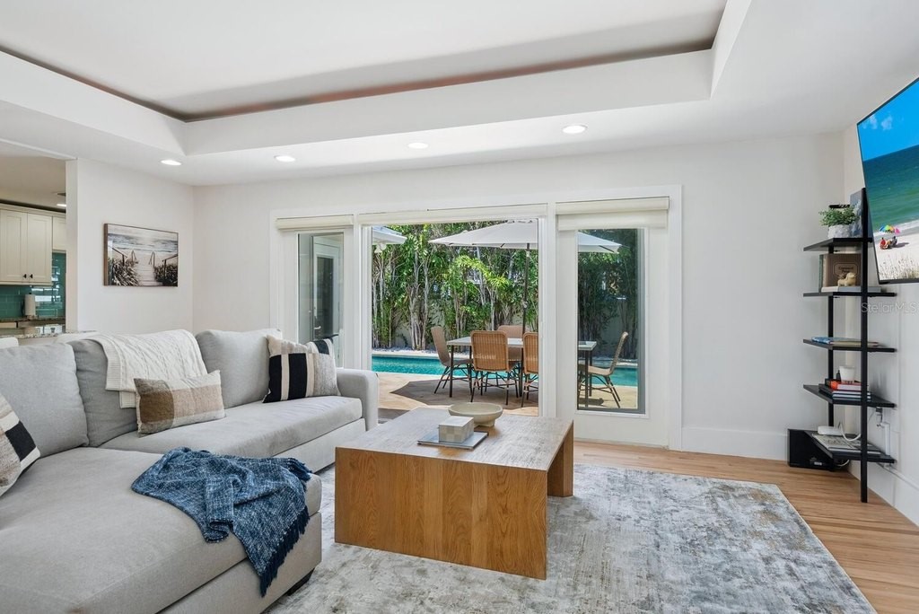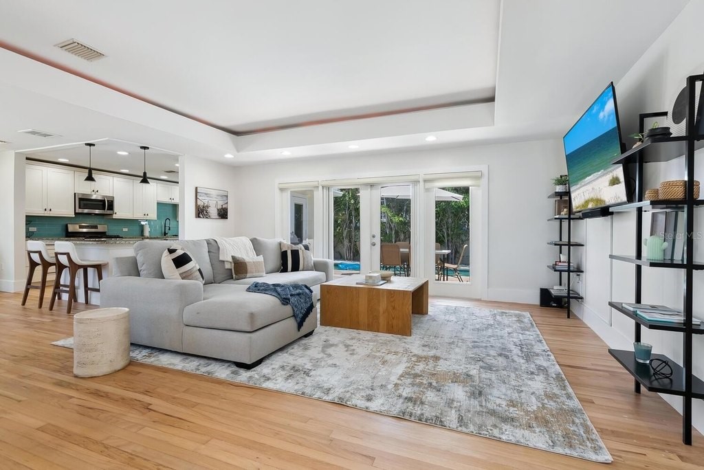 Experience the best of "West of Trail" living in this impeccably maintained, renovated pool home situated on an oversized lot. The interior features refinished hardwood floors, double-paned windows, and an updated kitchen equipped with custom cabinetry, granite countertops, and stainless-steel appliances. The inviting main living area is highlighted by a trey ceiling and a gas fireplace, with French doors leading to a private outdoor area, perfect for the Florida lifestyle. This exterior retreat includes a saltwater pool and a professionally landscaped, fully fenced yard with irrigation supported by an irrigation well. Significant improvements offer peace of mind and long-term value, including a new standing seam metal roof (2025), a full A/C system (2022), a garage mini-split (2024), and completely replumbed with PVC. The air-conditioned two-car garage features new epoxy flooring and is currently utilized as a versatile game room. Ideally located in the sought-after Southside Elementary district, this residence provides quick access to Southside Village, downtown Sarasota, and the renowned beaches of Siesta and Lido Key. The property has a great rental history.